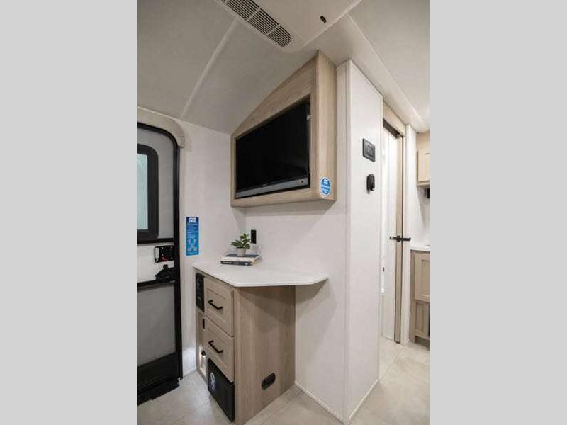 The complete composite wall construction and fully laminated roof provide a durable and sleek travel trailer you are sure to love. Each model features bigger nitrogen-filled tires and MORryde Solid, Supported Steps that will allow you to have much safer and secure footing for when going in out and of your travel trailer. A refrigerator also comes standard, along with back-up camera prep and more at-home comforts.